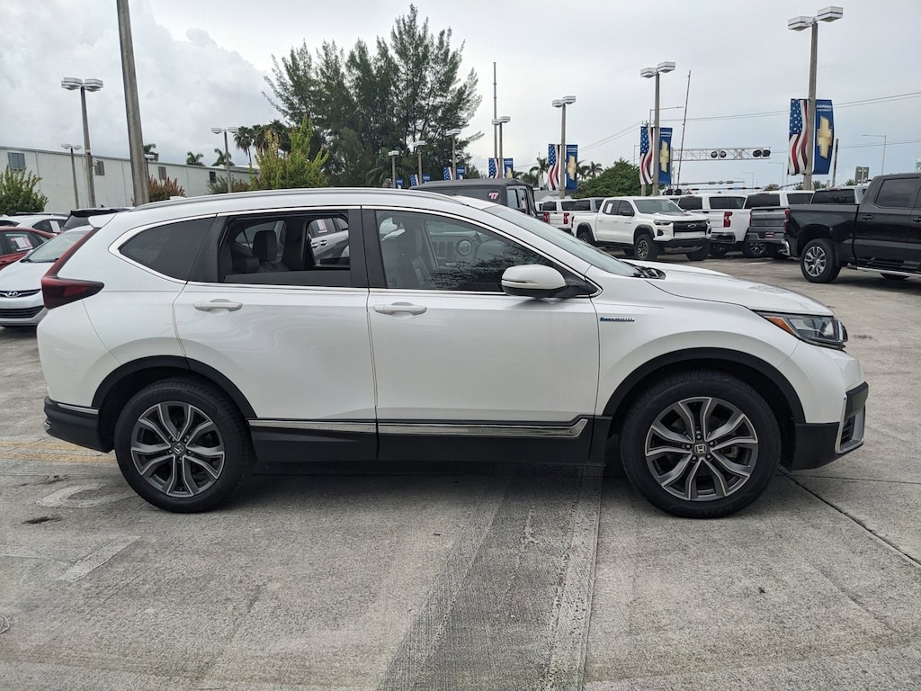 This 2021 Honda CR-V Hybrid Touring is offered to you for sale by AutoNation Chevrolet Doral. Gone are the days of SUVs being the size of a tank and handling like one. This Honda CR-V Hybrid is a perfect example of how SUVs have evolved into vehicles that are as refined as they are rugged. When it comes to high fuel economy, plenty of versatility and a great looks, this HondaCR-V Hybrid Touring cannot be beat. This Honda CR-V Hybrid's superior fuel-efficiency is proof that not all vehicles are created equal. This Honda CR-V Hybrid Touring comes equipped with all wheel drive, which means no limitations as to how or where you can drive. Different terrains and varying weather conditions will have little effect as to how this vehicle performs. Marked by excellent quality and features with unmistakable refined leather interior that added value and class to the Honda CR-V Hybrid Touring. Beautiful exterior. Clean interior. This Honda CR-V Hybrid is so immaculate it is practically new. The tires on this vehicle have passed a rigorous inspection for safety, stability and tread life.