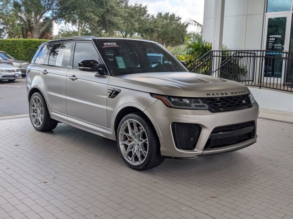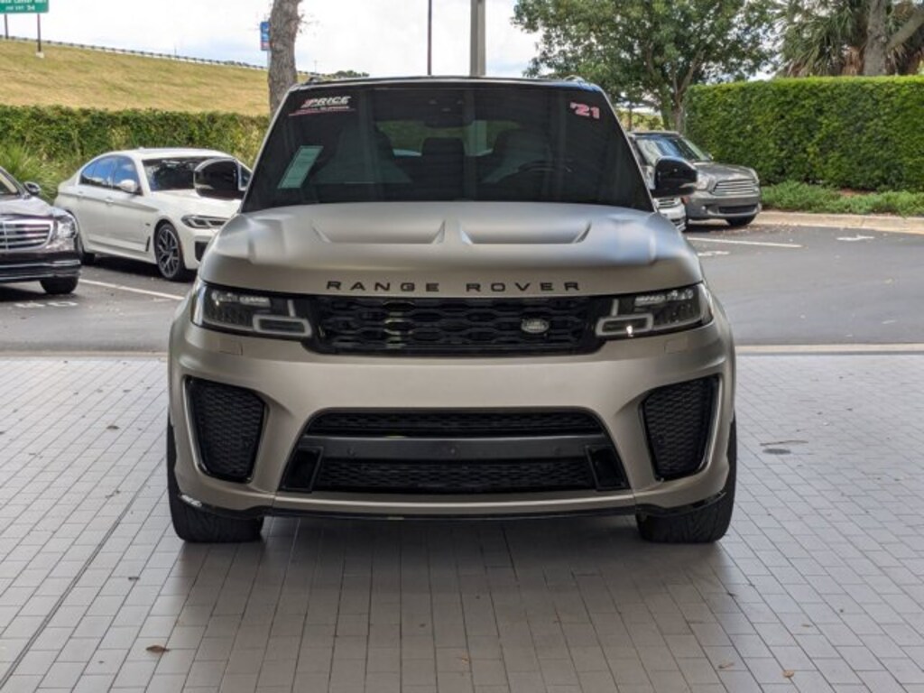 This 2021 Land Rover Range Rover Sport SVR is offered to you for sale by Jaguar Land Rover Fort Lauderdale. This Land Rover includes: EXTENDED CARBON FIBER TRIM FINISHER Leather Steering Wheel SVO ULTRA METALLIC PAINT IN SATIN FINISH EBONY MORZINE HEADLINING BODY COLORED CARBON FIBER HOOD TOW HITCH RECEIVER Tow Hitch CIRRUS/EBONY/EB/CIR/EBONY, WINDSOR LEATHER SEAT TRIM Leather Seats FLUX SILVER HEATED & COOLED FRONT SEATS W/HEATED REAR SEATS Heated Rear Seat(s) Cooled Front Seat(s) Heated Front Seat(s) DRIVE PRO PACK Adaptive Cruise Control Blind Spot Monitor HEAD-UP DISPLAY Heads-Up Display SOFT DOOR CLOSE *Note - For third party subscriptions or services, please contact the dealer for more information.* If you're in the market for an incredible SUV -- you'll definitely want to check out this Land Rover Range Rover Sport SVR. This AWD-equipped vehicle will handle beautifully on any terrain and in any weather condition your may find yourself in. The benefits of driving an all wheel drive vehicle, such as this Land Rover Range Rover Sport SVR, include superior acceleration, improved steering, and increased traction and stability.